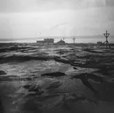 "Hållö. Hållö fyr och lotsstation tagen från sluttningen vid fyren. Till venster å bilden lotsstationen och omedelbart bredvid fyrmästarbostaden."
