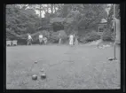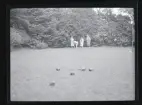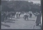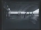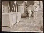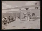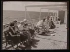 Kvinnor spelar pingis på fartygsdäck.