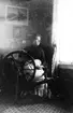 Agda Magnhild Viola Karlström, f 1911-11-18 i Björås, Nora. Magnhild spinner. Brodern Alfred hade själv tillverkat kameran han använde.