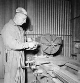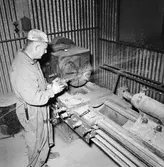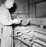Sprutmålning vid dragskåp, Gustafsbergs Porslinsfabrik.