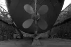 Stäven på museifartyget SANKT ERIK i torrdocka.