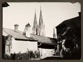 "Upsala. Utsikt från Studentkårens bostadshus Ö Slottsg.", kvarteret Ubbo, Uppsala 1933