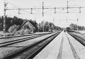 Statens Järnvägar, SJ Dk 304 Stationshus i trä i två våningar från 1875, brädfodrat 1884, utbyggd 1898. Lokstall 1898. Vattentorn, 1890 försett med ångpump. Ny kolbox 1900. 1931 nytt vattentorn. Vagnvåg 1898.