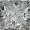 Karbenning sn, Bennebo by. Målning i förstugutaket till Anders Pers' gården, föreställande aposteln Johannes.