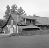 Tannefors slussvaktarebostad 1961. I fonden delar av Tannerfors kvarnby och i höger bildkant vattenkraftverket som togs i bruk 1950.