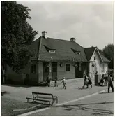 Vetlanda - Sävsjö Järnväg, HvSJ, Banavdelningen dressin utanför stationshuset. Nedlagd av bandelen Sävsjö Vetland Målila. 1961-09-01.