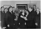 Uppvaktning för den med pension avgående postdirektören Gunnar Linden, Stockholms D.