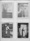 Delvis kolorerat fotografi. Fattiggården i Varberg med trädgård och omgivningar. En monumental fritrappa leder upp till entrén. I förgrunden syns odlingar i köksträdgården och några trädgårdsarbetare poserar för fotografiet. Man ser också äldre kvinnor som sitter på bänkar. På fälten bortom huset går kor på bete.