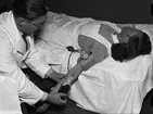 "Personalen på Ulleråker lämnar blod till armén" - läkaren Evert Ljungberg tappar blod från personal på Ulleråkers sjukhus, Uppsala oktober 1941