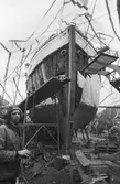 Kontaktkopia av ett fotografi från en tvåmastad skonert av liknande typ som övningsfartygen Gladan och Falken. Fartyget ligger till ankars. På babordssidan syns det två skeppbåtar.