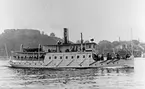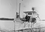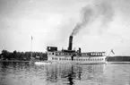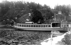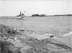 Dalarö. Utsikt från Baldersviken. I bakgrunden bl a skärgårdsångaren DALARÖ II. Vykort.