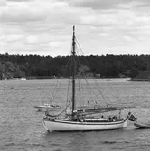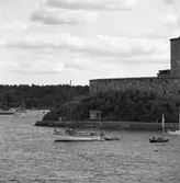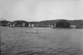Barnens dag. Fest utomhus. Mycket folk, vimplar och orkester.