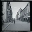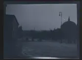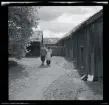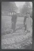 Två män iklädda promenadkläder med käppar vid Villa Solveden, Djursholm.