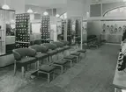 Lindgren & Brandt, 1947. Interiör, kassadisk och hyllor.