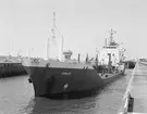 Karl Ask Färg kemikalie & tapetaffär i hörnet Nygatan-Österbrogatan. Herr Borgman står framför affären. Jordbrukarebanken.