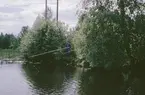 Hastighetskontroll vid Risinge, 1959. Ingemar Karlsson och Lennart Baugert.