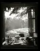Fotografi från kuvert märkt med "Ernst Nordenskjöld". Motiv av liten pojke som står på strand i ösregn i djungeln.