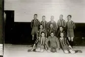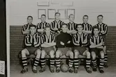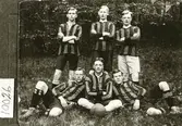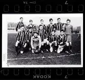 Blind pojke, 11 juni1966 En liten blind pojke i tioårsåldern klädd i randig T-shirt sitter framför en skivspelare.