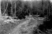 Farsta Strand. Vy från gamla Magelungsvägen mot norr. I bakgrunden villa, Solbacken. Till höger hus som en tid inrymde poststation.