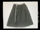 Ylledräkt i figurnära snitt, beställd med två kjolar för variationsmöjligheternas skull och för att kjolen nöttes snabbare. Beställd från NK:s Franska damskrädderi av Margit Graffman (1900-1991) chef för NK:s konfektionsavdelning 1931 till 1953. Levererad juni 1948.