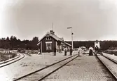 Varbergs järnvägsstation år 1930. Bilden är tagen från spårsidan mot söder.