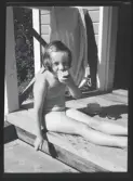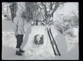 Doktor Landahls och apotekare Kjellins barn vid lekstuga i snö.