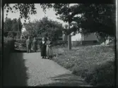 "Värnpliktiga som av anförvanter och vänner ledsagas ett stycke på väg då de lämna N. Tagil för att fullgöra sin värnplikt"
