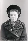 Ateljéporträtt - kvinna klädd i ytterkläder, Östhammar, Uppland