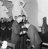 Svenska Turistföreningens 50-årsjubileum - "professor Gerard De Geer mottager föreningens guldmedalj vid aulafesten", Universitetsaulan, Uppsala 1935