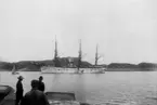 Enligt text som medföljde bilden: "Lysekil. Skeppsgossefartygen Najaden, Falken, Gladan från land 23/6 1899".