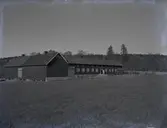 "1936. 28. Torps Herrgård." "Fotot taget från väster. Det mycket täta staketet till höger och bakom ladugården går utmed infartsvägen till gården. Bostadshuset finns bakom ladugården. Fähuset med alla fönster har höjts och är nu högre än delen till vänster."