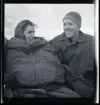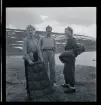 Ett par män och en kvinna ute på klippor. I bakgrunden Stora Karlsö fyr.
