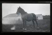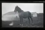 "Fogelstad." Häst framför ladugårdsbyggnader.