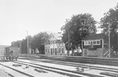 Vy på bangård och stationshus.