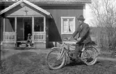 Sven Falkeby luftar sin JAP ett extra varv, Ålleberg i bakgrunden. Okänt år.