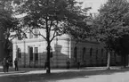 Växjö högre allmänna läroverk, västra fasaden med aula och gymnastiksal, mot dåv. Parkgatan.