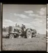 Lindhofs kungsgårds första traktor, inköpt 1924. En man sitter på traktorn och en annan står bakom ekipaget.