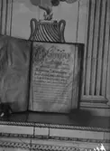 Svartå Herrgård 1 28 juli 1966 Ett bord med en stor vas står i ett rum i Svartå Herrgård. En duk ligger även på bordet. En kakelugn syns i bakgrunden.