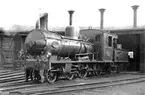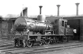 Mellersta Blekinge Järnväg. MBIJ Lokstall i Ronneby år 1900. Med från vänster MBlJ lok 25, BTJ lok 52 och MBlJ lok 27.