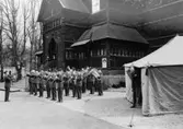 Avskedshyllning och uppvaktning med gåvor för postdirektör Ernst Ljunggren vid hans tjänsteavgång år 1943.