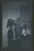 "Otto Larsson, snickare Björksta, Äsköping, f. 1882." Porträtt av en man som sitter vid ett bord fullt av gratulations-blommor.