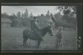 Karl Emil Wingren, häst med lövkrans för undvikande av solsting och för att skydda ögonen mot flugor.