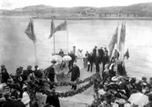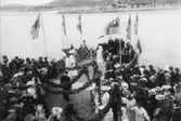 Uppgift enligt fotografen: "Uddevalla. Smyckat podie. Rotary, Stadsfiskal Håkansson."