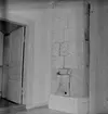 Svartå Herrgård 1 28 juli 1966 Ett bord med en stor vas står i ett rum i Svartå Herrgård. En duk ligger även på bordet. En kakelugn syns i bakgrunden.