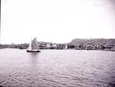 Enligt fotografens noteringar: "Kappseglingsbåt ." Plats: Sunningen Datum: 30 Juli 1899 Tid: Kl 2 em. Ljus: Solsken Bländare: No 1 Objektiv: Svenska Express Exponering: Hastighet No. 1 1/2 Framkallning: Hydrochinon, Eikonogén