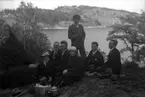 Enligt text som medföljde bilden: "Henån. Engelbert, Valter, Primus Fors, Torsten Haglund, Ernst, Leonard Settergren och Esole (?) 28/7 1901."