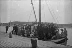 Enligt text som medföljde bilden: "Gruppfoto af Folkförbundare på sommarutfärd till Skår. Söndagen den 29/8 1915 kl. 5 em. Pirol-Soda 1/5 sekund".