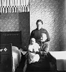 Ateljé. Dam med litet barn i knäet. Fotograf: Ellen Kock? Axel Lundbäck m.fl. Gullspångssamlingen. Bilder från Gullspång med omnejd.