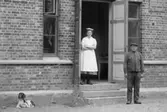 Till vänster Östra Ringgatan 19, Södra området No. 1 A, Enköping, sett från norr. Till höger Aktiebolaget Mälaremejeriet (adress Östra Ringgatan 21 sannolikt).