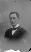 Enligt fotografens journal nr 2 1909-1915: "Bergqvist, Stationsskrifvare Herrljunga". Enligt fotografens notering: "John Bergqvist stationsskrivare, Herrljunga".